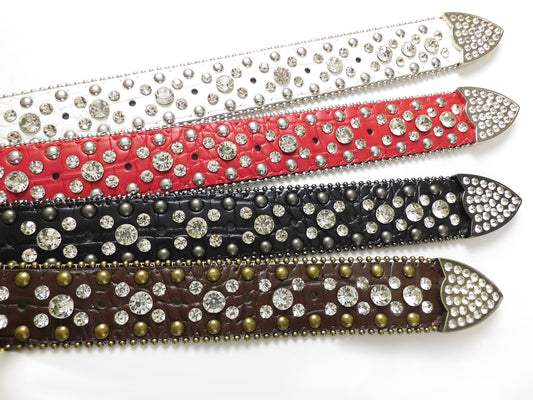 Woke Creations Rhinestone Celebrity Bling Vegan Leather Belt White