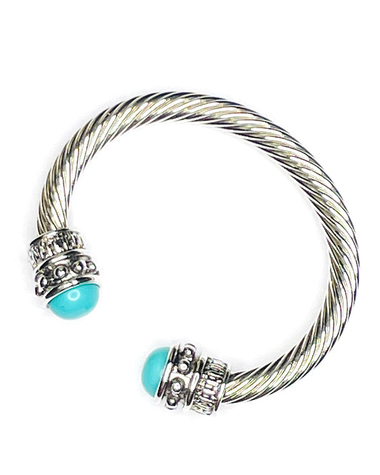 Woke Creations Grand Silver Plated Twisted Cable Bangle Cuff Bracelet with Statement Turquoise