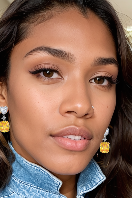 Woke Creations CZ Heart Yellow Gemstone Drop Earrings Plated Metal